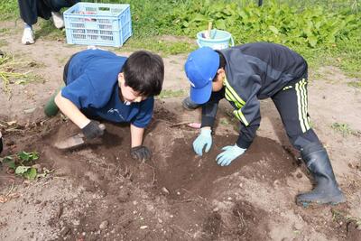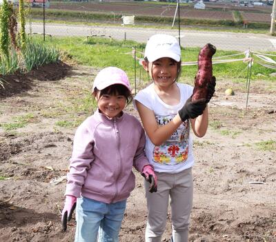 全校児童でさつまいもを収穫しました。